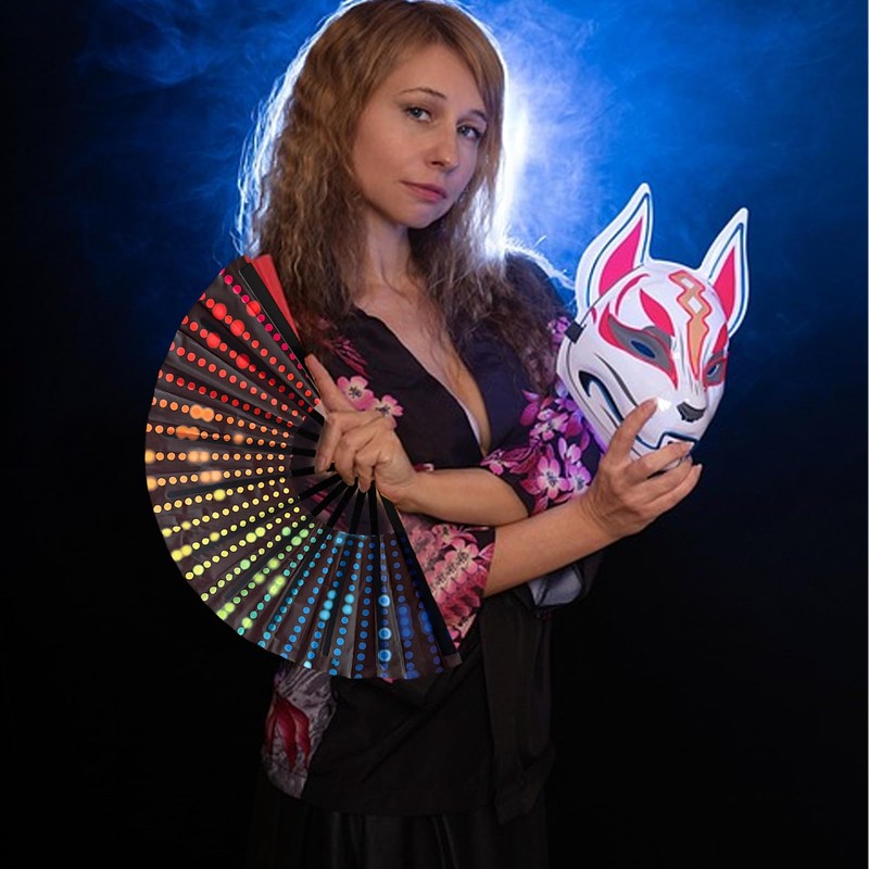QIYUDA 3 Pcs Large Line Dancing Fan, Foldable Boots on The Ground Hand Fan, Big Fans Handheld Line Dance Clap Fans (Bright Lights)