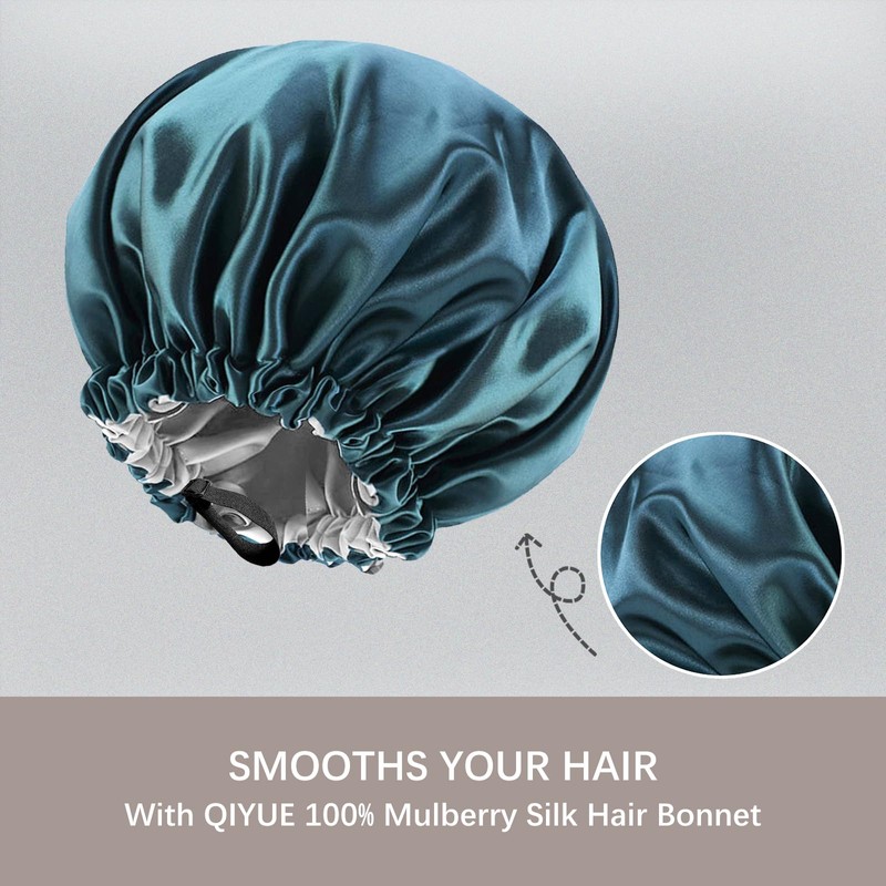 QIYUE Satin Bonnet Silk Bonnet Hair Bonnet for Sleeping Hair Bonnets (Gray&Haze Blue)