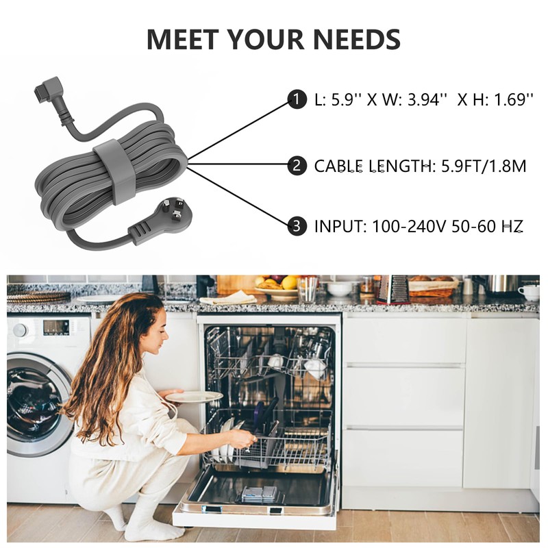 - Perfect Fit: Our replacement power cord and junction box assembly is designed to fit perfectly in your Bosch dishwasher, ensuring optimal performance and safety. The power cord is 5.9ft (1.8m) long, providing ample length for most installation needs.