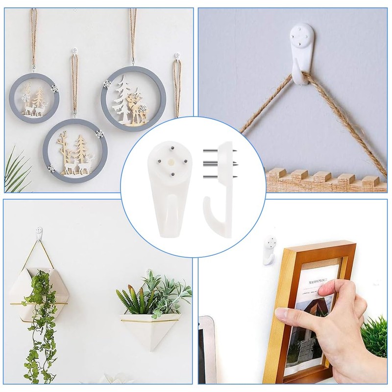 QJIBOVM 60pcs Non Trace Picture Hooks for Hard Wall Picture Hanging Kit for Picture Frame Fixing Picture Hanger Hook for Plasterboard Walls Drywall Concrete Wall