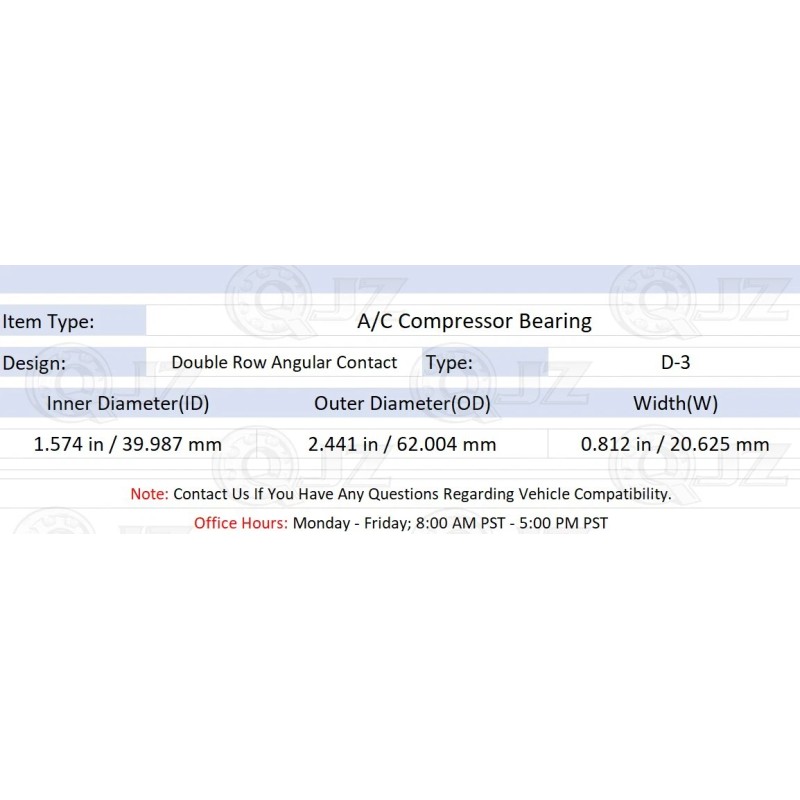 QJZ [Qty.1] 907257 A/C Compressor Bearing Replacement for 1975-1989 Buick Skyhawk