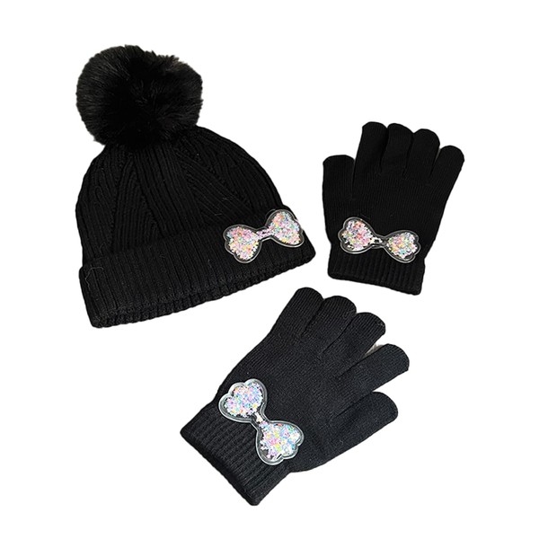QKURT Girls Beanie Winter Hat and Mittens Set, Warm Accessories Set Toddler Knitted Cold Weather Set Kids Thermal Hat and Gloves Set