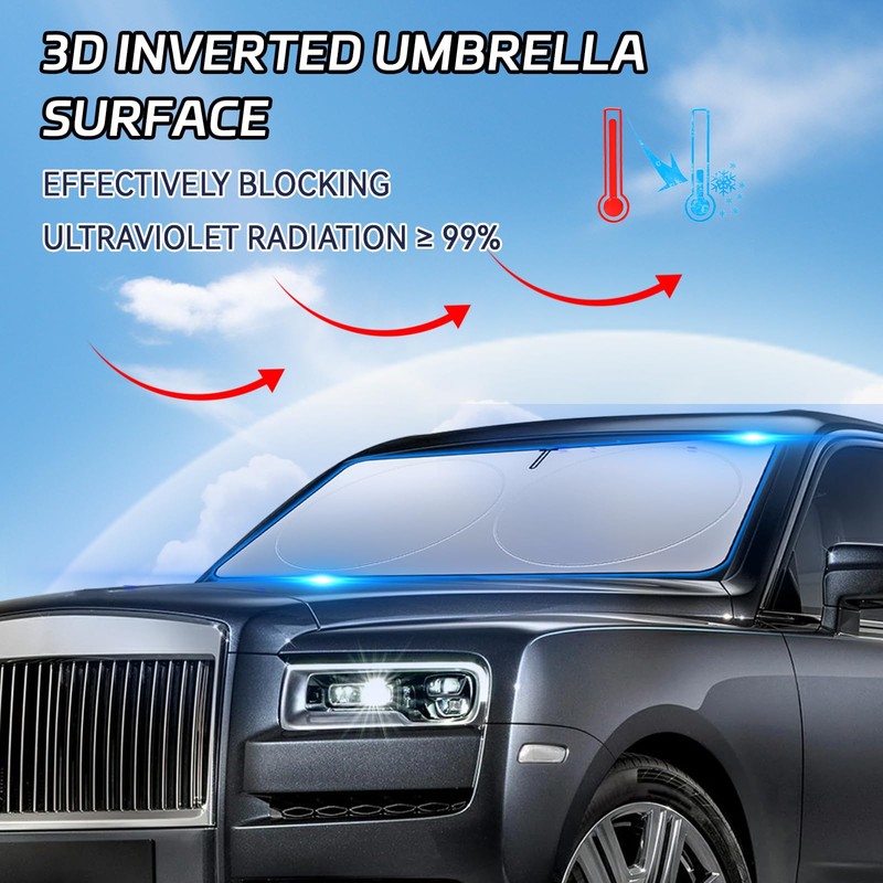 - 【Sunshade Function】The car windshield visor has a full light-shielding and heat-insulating layer. In the hot summer, it can effectively help you reduce the temperature in the car by 15-20℃, making the car cooler and more comfortable. It is a must-have car accessory for your driving trip.