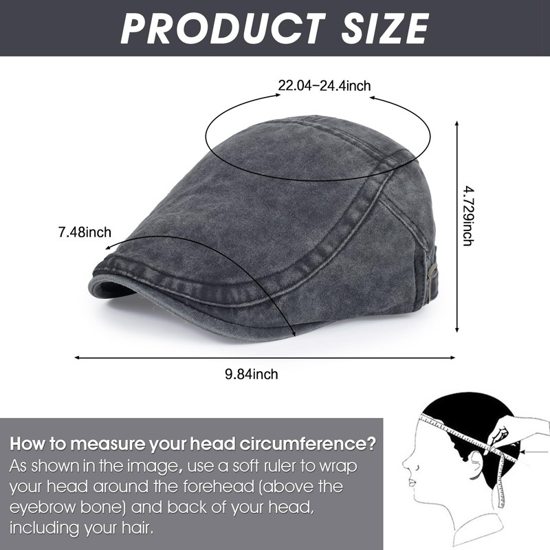 - Adjustable Buckles: Newsboy hats with adjustable straps on both sides, you easy adjustment. The size range is 21.65-23.62 inches. Attention: Please measure your head circumference accurately with a tape measure before placing an order! Refer to the picture for the measurement method.