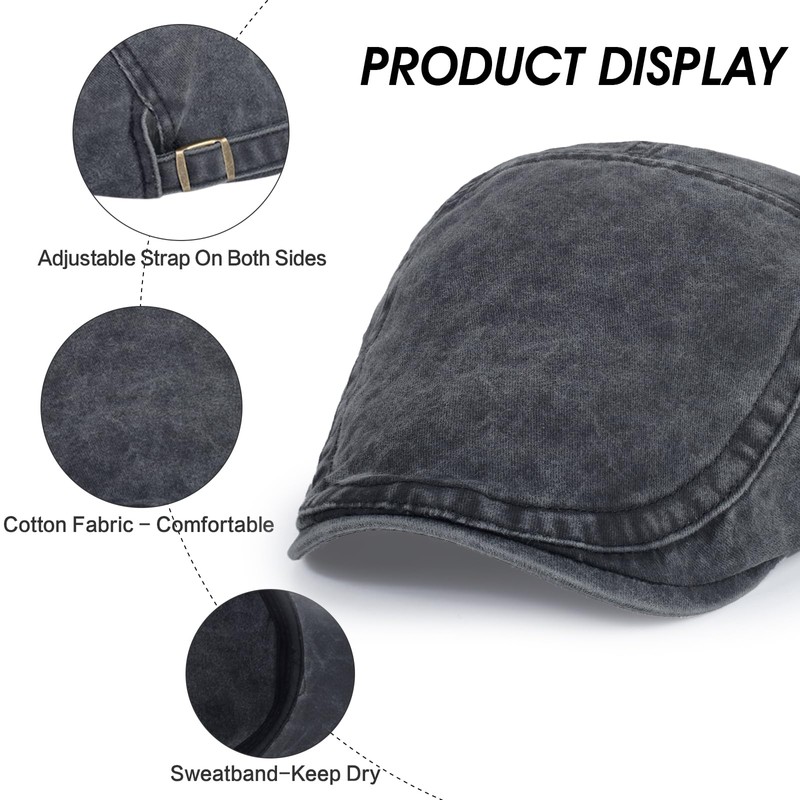 - Material: The men's newsboy caps are made of 100% cotton, which feels soft and comfortable to the touch, and does not irritate the skin. Newsboy cap is adopting exquisite craftsmanship, the wiring is smooth and fits snugly to the head.