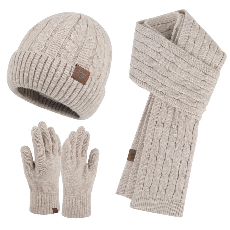 - Cozy & Warm Fleece Lined: The women's winter beanie, scarf and gloves set is made of acrylic and cotton blend, soft fabric that gives you a good feeling. The padded lining gives a super soft skin feel, comfortable, skin-friendly and cosy. This knitted hat keeps your neck hands and head warm in cold winter days.