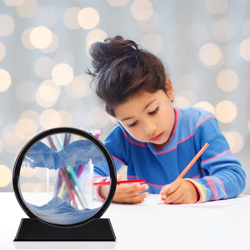 - CALMING SENSORY TOY: Moving sand pictures create a new sand picture with each turn.The sand never makes the same design twice. Watching the colored sand slowly tumble down the circle is relaxing and calming to the mind, which can relieve stress, relax your eyes,cultivate patience. give you unexpected surprise