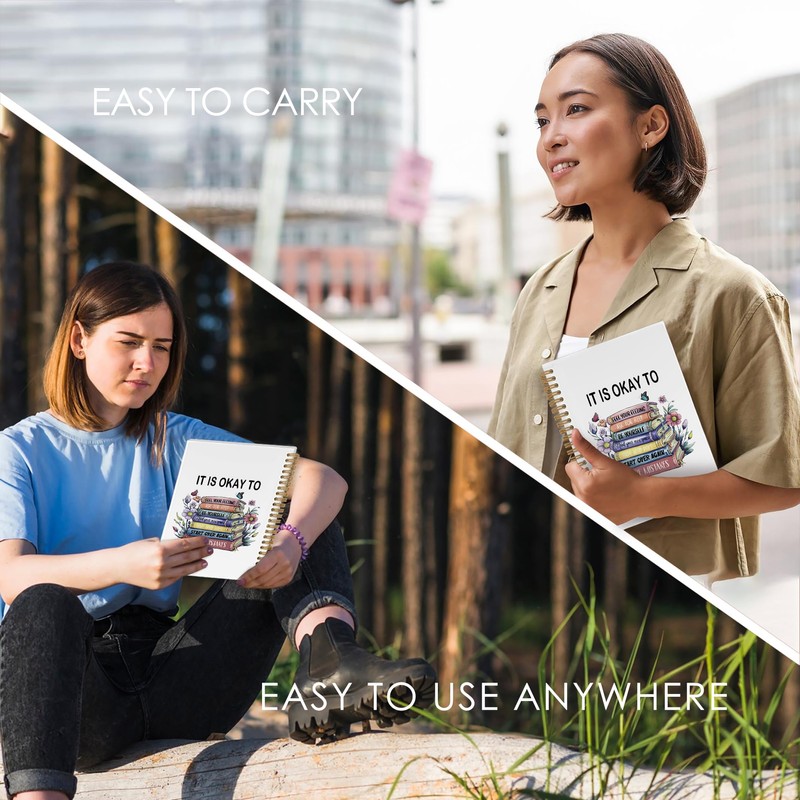 QLMX Inspirational Mental Health Spiral Notebook, It Is Okay Journal Notebook, Motivational Notebooks for School Work, Positive Therapy Office Supplies Gifts for Women Kids, 5.5x8.3 Inch