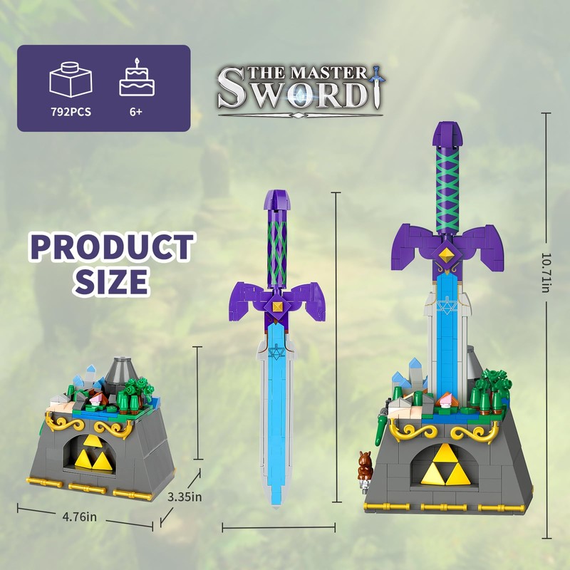 • Product size: the master sword is about 8.7 inches long, the building base is about 4.76 inches long, 3.55 inches wide and 5 inches high.