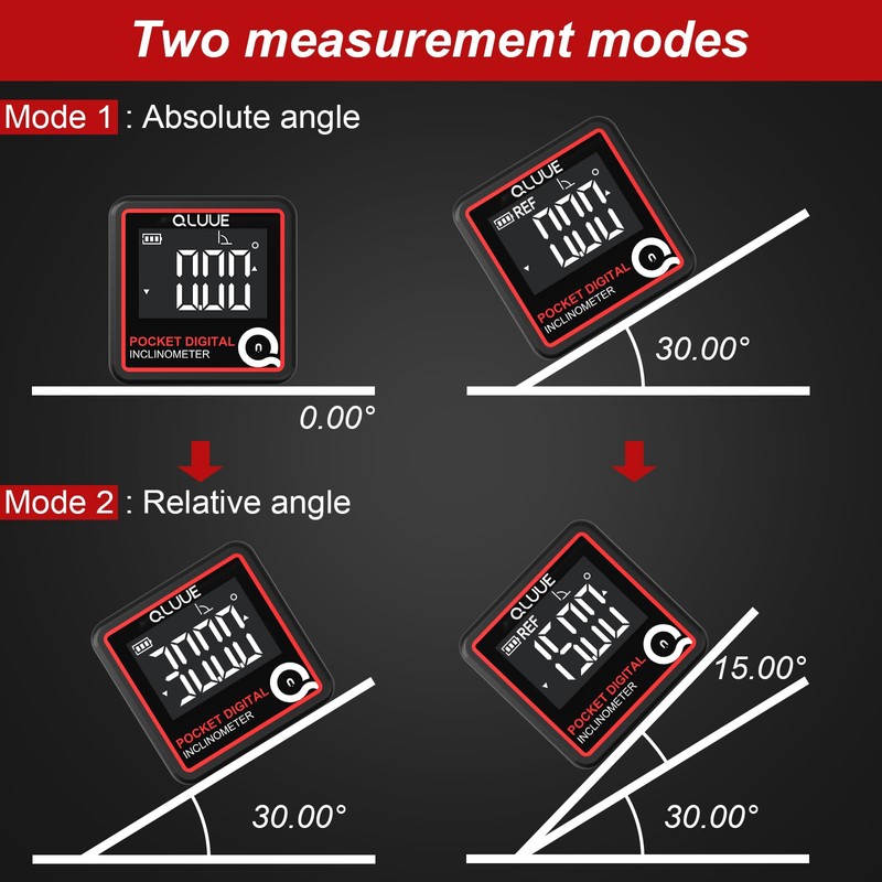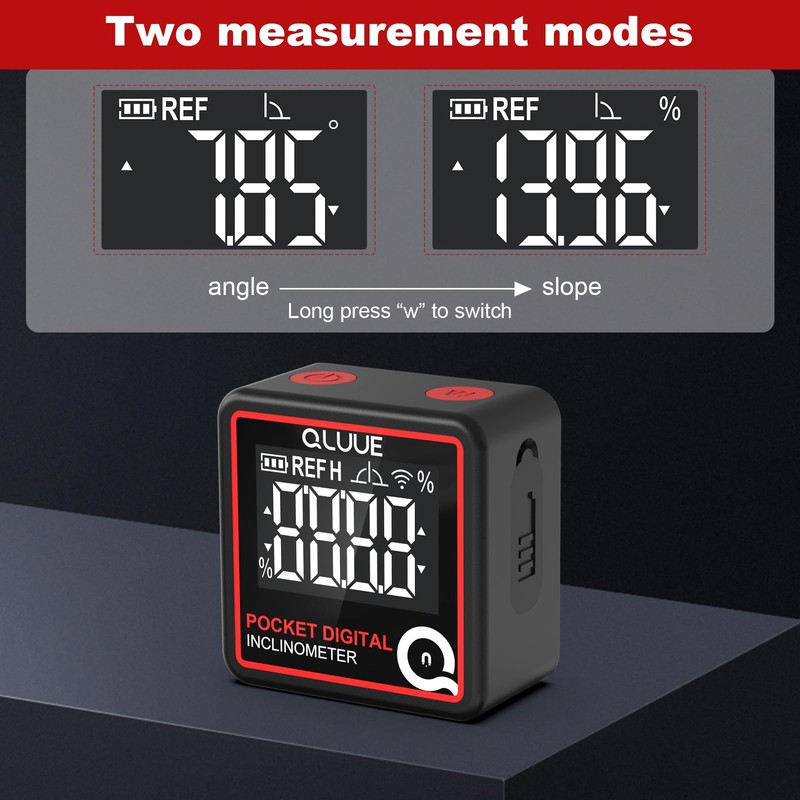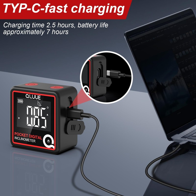 QLUUE Digital Angle Finder,Miniature Digital Inclinometer, TYP-C Charging,Backlight LCD Bevel Gauge Protractor Inclinometer for Carpentry, Building, Masonry, Automobile