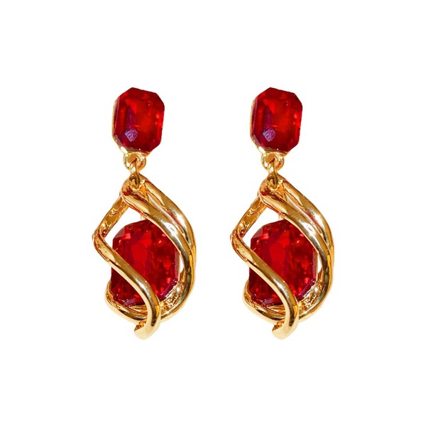 QLUYCKW Square Crystal Stud Earrings for Women Spiral Twist Gold Alloy Fancy Big Rectangle Crystal Statement Earrings Infinity Love Prom Pageant Jewelry Birthday Gift for Women (Red)