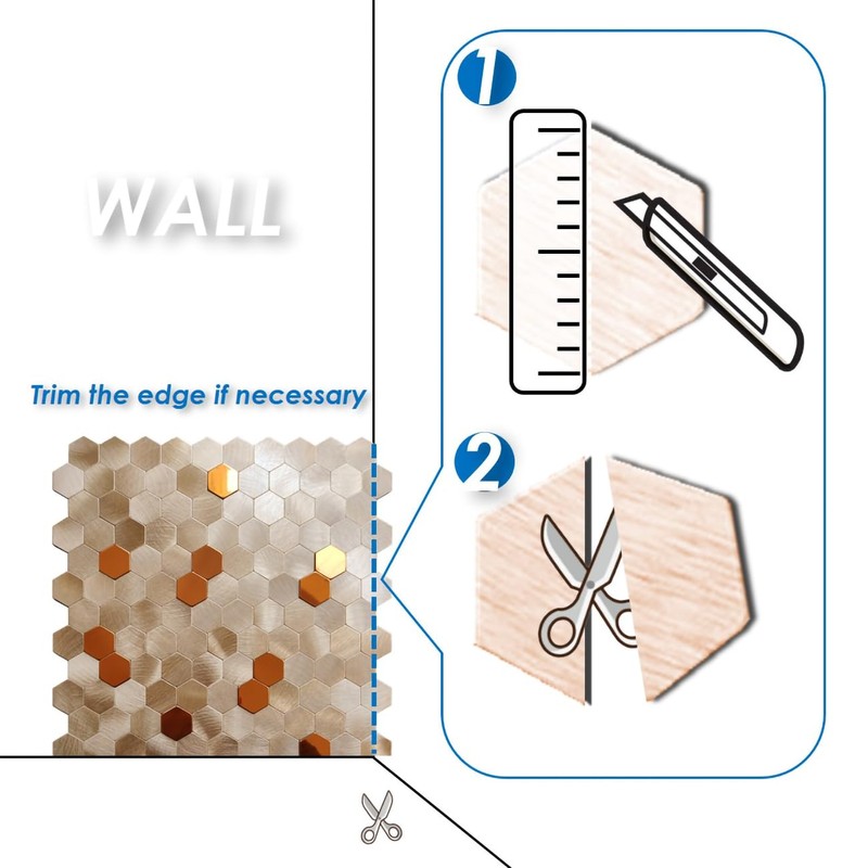 - 3. DIY Installation: It is very easy to mount on your project, no grout that mess up your place and saving time, just PEEL and STICK. The tiles can be cut by a knife, scissors to the dimensions you want.