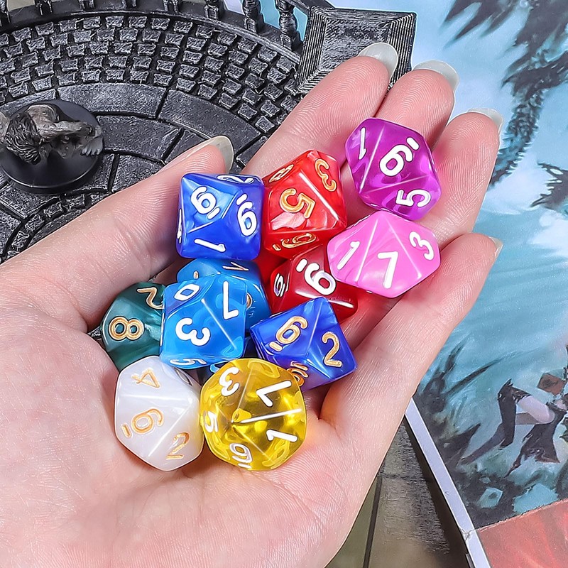 • Polyhedral Dice Set - The package contains 12 pieces 10 sided cubes (the colours are random, no repeated colours), also comes with a black velvet bag in which you can store dice, keep the cubes clean and tidy.