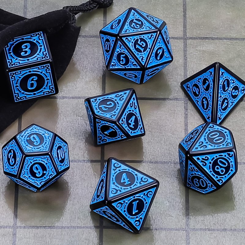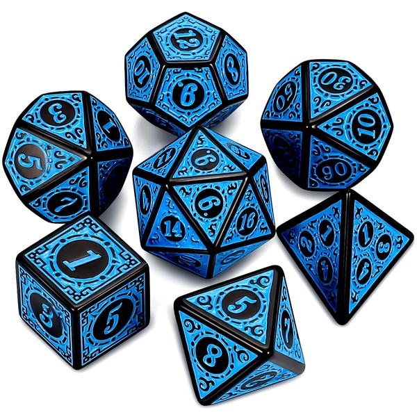 QMAY DND Dice Polyhedral Dice Set – 7 Pieces for Dungeon and Dragons MTG RPG D&D D20, D12, D10, D%, D8, D6, D4 (Blue Engraving Pattern)