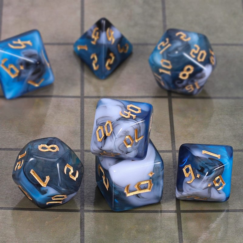 DND dice perfect for table games, board games, dungeons and dragons, MTG, Shadowrun, Pathfinder, Heroscape, Savage World, Yahtzee, math games, etc. This dice set is designed to give you a happy playtime with your friends and families. Perfect as a gift for Dungeons and Dragons enthusiasts!