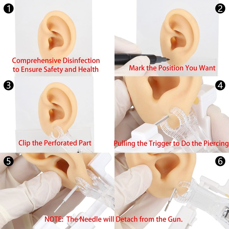 - Easy to use: You need to locate the place where you want for the hole to be accurate to pierce, once you gently press the trigger. After pulling the trigger to do the piercing, the needle will detach from the gun. There is a plastic sheath around the needle which you can then use to push the needle out and thread the jewelry into the piercing.