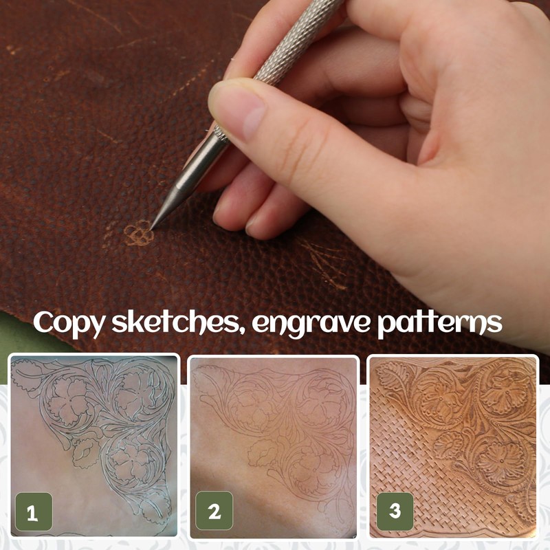 - Usage: This leather scribing tool can be used for leather bags, belts, mobile phones, shoes, and other leather products. It is used as a dotting tool for drawing, transfer, relief, painting, engraving, etc.