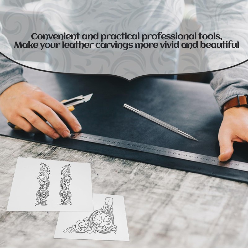 QMNNMA Leather Scriber Pen, Pointy Stainless Steel Picker Pen with Leather Carving Pattern Description Paper for DIY Crafts, Leather Line Description
