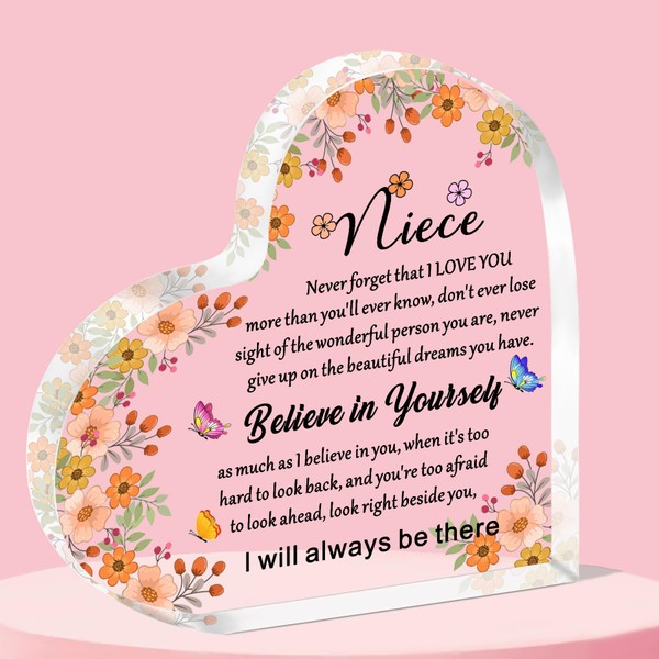 - ❀Inspirational Gift for Niece: Inspirational gifts for your Niece,Inspire your Niece with this special Acrylic Plaque.Every time she uses it, it brings back beautiful memories.Show how much you love her with the absolute best gift she'll ever love.