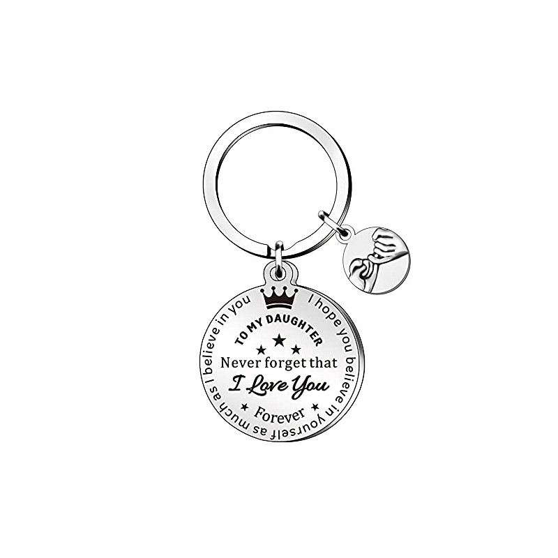 • ❀Encouragement Gift: Engraved with to my daughter never forget that I love you forever I hope you believe in yourself as much as I believe in you, give this key chain gift to inspire your daughter. This is a great way to express your love to your daughter.