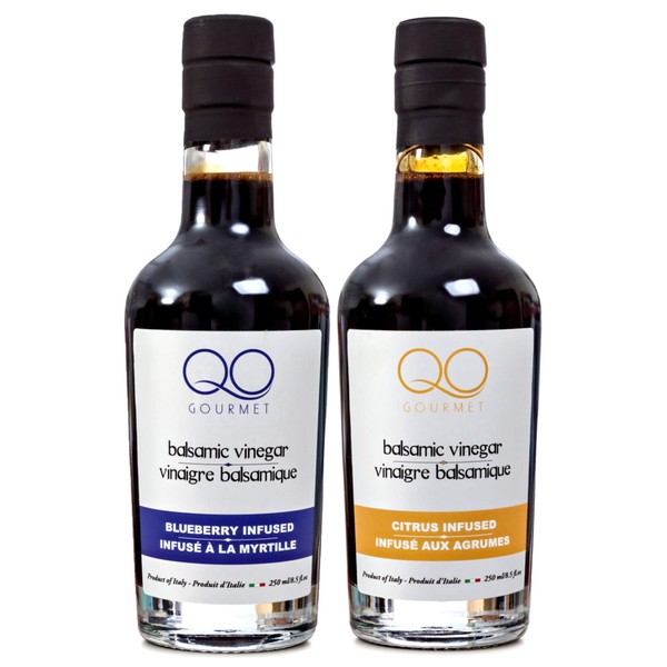 QO Gourmet Flavored Aged Italian Balsamic Vinegar of Modena Sampler Gift Set of 2 (Blueberry / Citrus) Crafted in Modena
