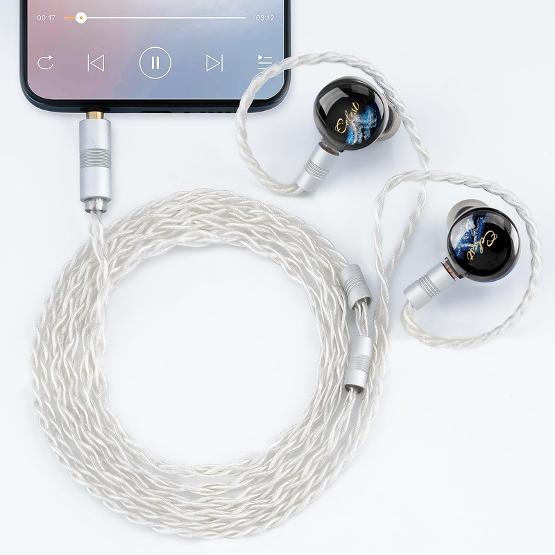 • 【Durable & Reliable 0.78mm 2Pin 5N OFC Cable】: This IEM headphone includes a high-quality 5N copper silver-plated cable with the Pandamon 2.0. The cable has a 4-core cross circular braided design with 49 strands of 0.06mm wire core. It has 0.78mm two-pin connectors and interchangeable plugs. You can choose between a 3.5mm single-ended or 4.4mm balanced termination plug for the cable.