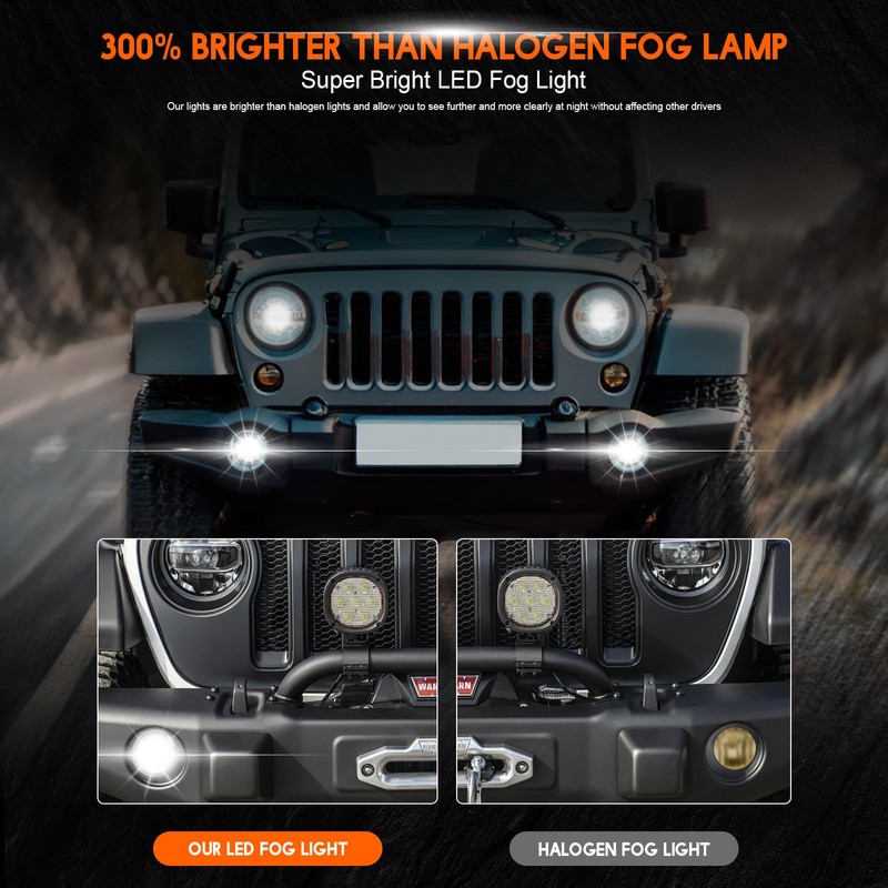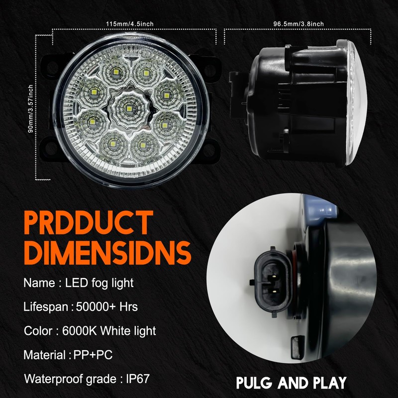 - 【Long Spanlife】Impact-resistant PC lens and weather proof casing, has greater impact and shock resistance; The round fog light assembly with upgraded rebreather hole at the back side to prevent water ingress and fogging, waterproof grade IP65, life-span reach to 30000hrs.