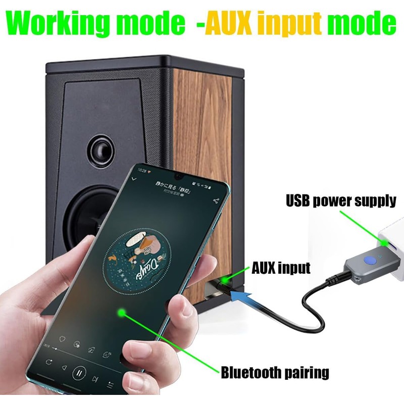 - 【Transmission]】: The transmission rate is 3 (Mbps), and the longest transmission distance is 10m. Note: This Bluetooth is suitable for older speakers, and 99% cars (some cars do not support usb Bluetooth input, so you need to use its AUX input mode)