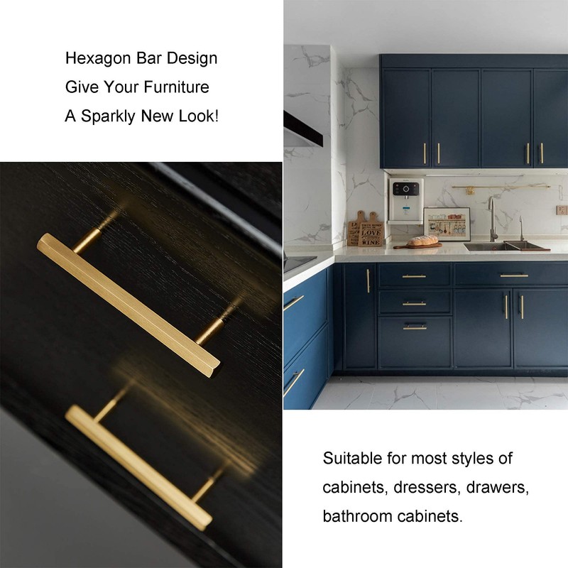 - Solid brass pulls hexagon champagne Cabinet hardware knobs brushed gold mid-century modern drawer pulls decorative dresser copper handles furniture kitchen bathroom cupboard closet chest vanity wardrobe bookcase