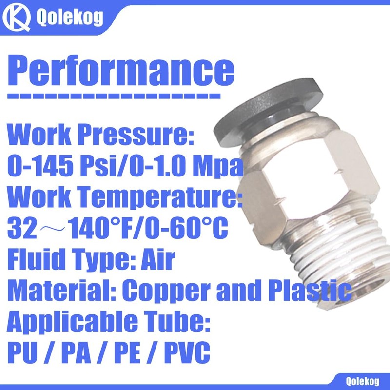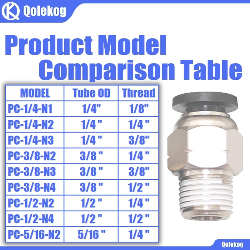 Qolekog Pneumatic Push to Connect Air Fittings 3/8" OD Tube to 3/8"NPT Male Thread Straight PC-3/8-N3 (Pack of 10)
