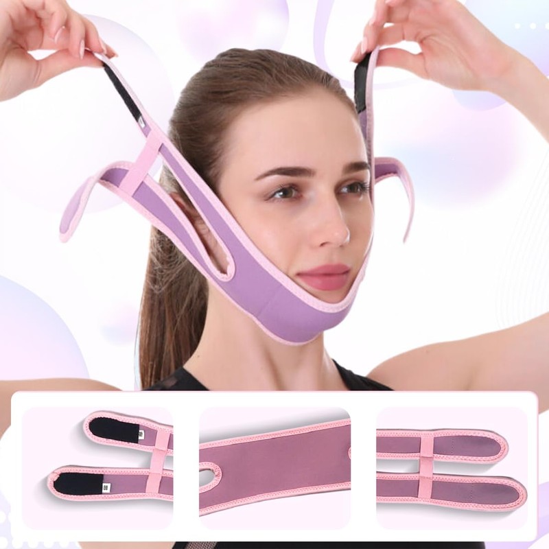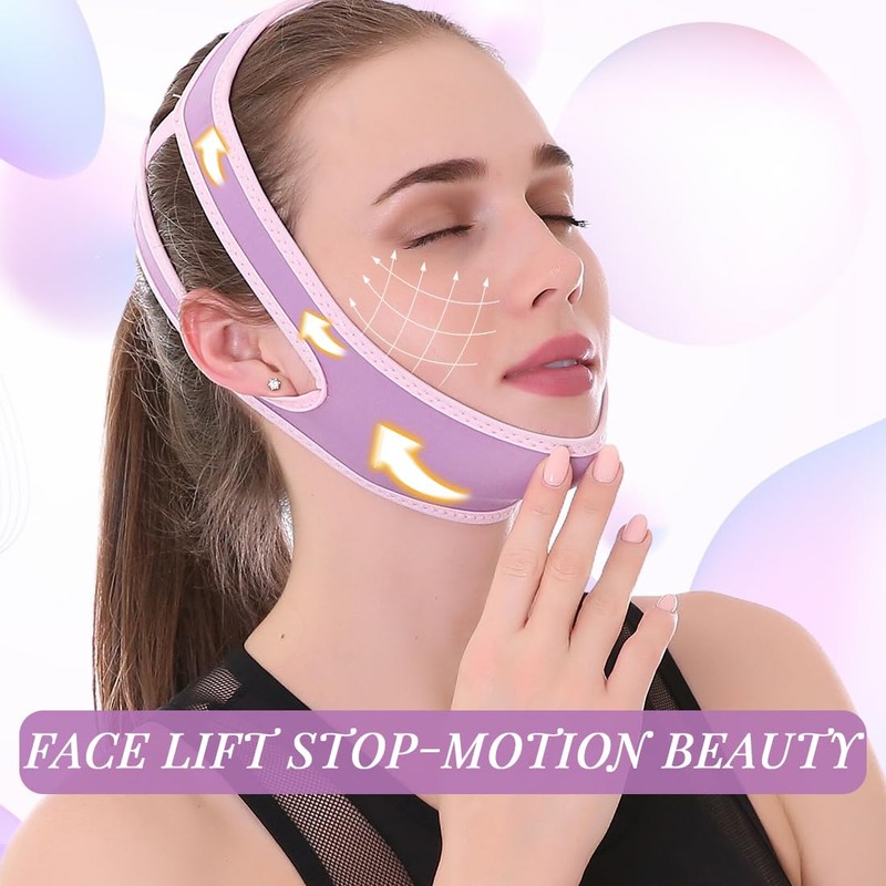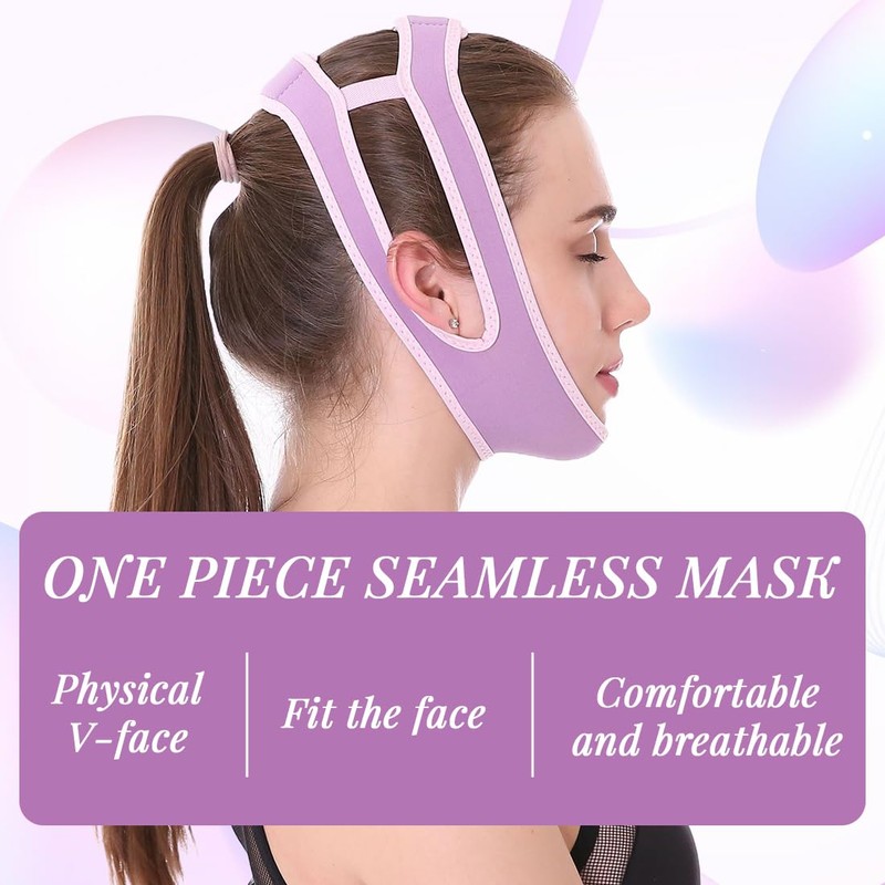 QOMJUFA Anti-double chin mask, reusable V-line mask, V shape face, can be used at home or while sleeping, purple