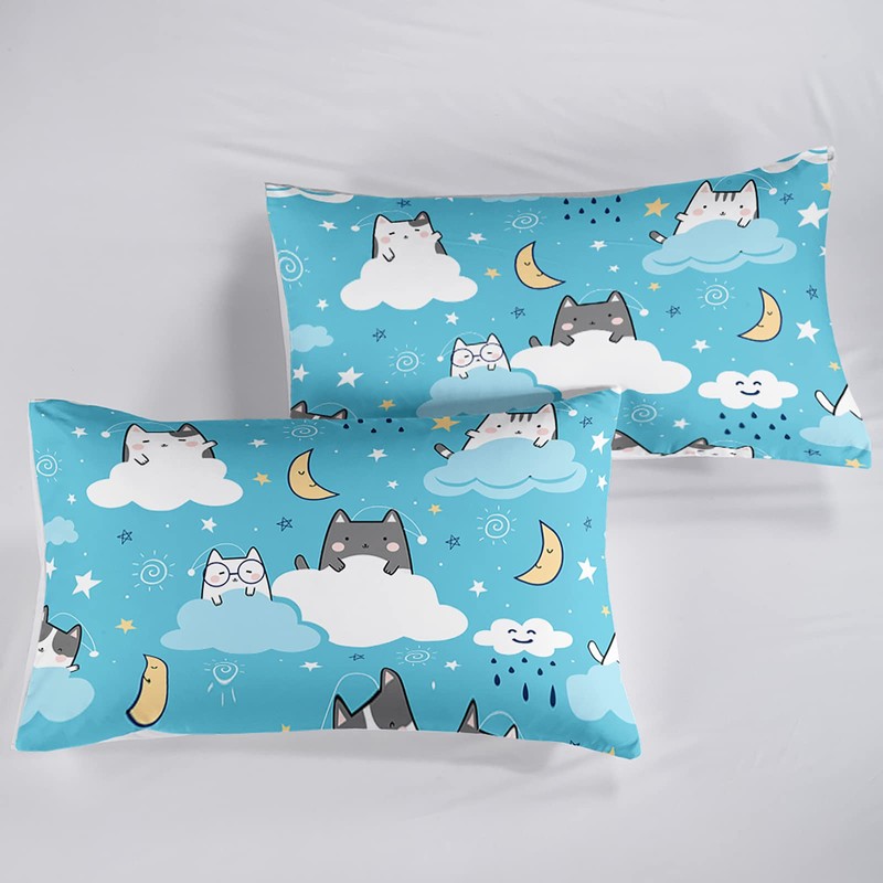 • 【Kawaii Cat Comforter Set】:Cat bedding set for kids.Twin size comes with 1 comforter(67" x 85") and 2 pillowcases(20”x30”). Full size comes with 1 comforter(80”x90”) and 2 pillowcases(20”x30”). Queen size comes with 1 comforter(90" x 90") and 2 pillowcases(20”x30”).King size comes with 1 comforter(103" x 90") and 2 pillowcases(20”x36”).THE SHEETS ARE NOT INCLUDED!