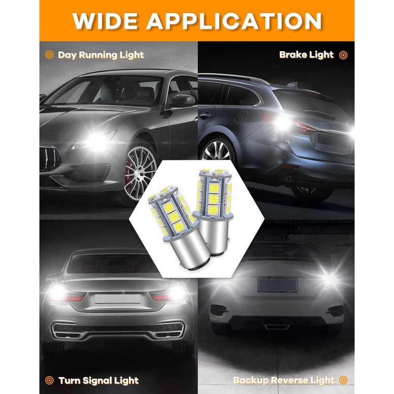 - 【Application】The bay15d led bulb can be used to replace backup reverse lights, turn signals lights, tail lights, brake lights, parking lights, daytime running lights, caravans, RVs, travel trailers, campers, boats, etc. (To prevent hyper flash problem, please use load resistor when replacement for turn signal lights.)