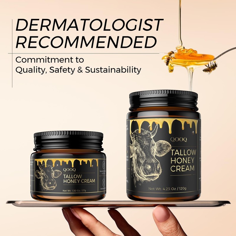 QOOQ QOOQ 100% Grass Fed Beef Tallow for Skin with Raw Honey & Beach Rose Oil...