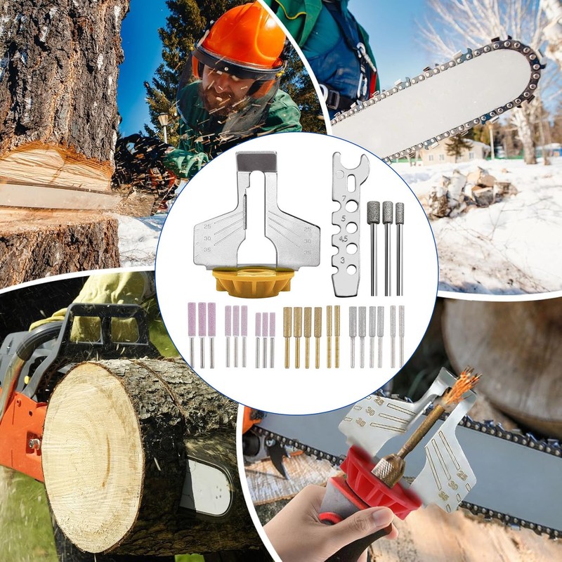 - 【Practical Kit】: Combines essential tools,angle guide,wrench and multiple diamond sharpening wheels,into one set for efficient chainsaw sharpening,enhancing cutting performance.