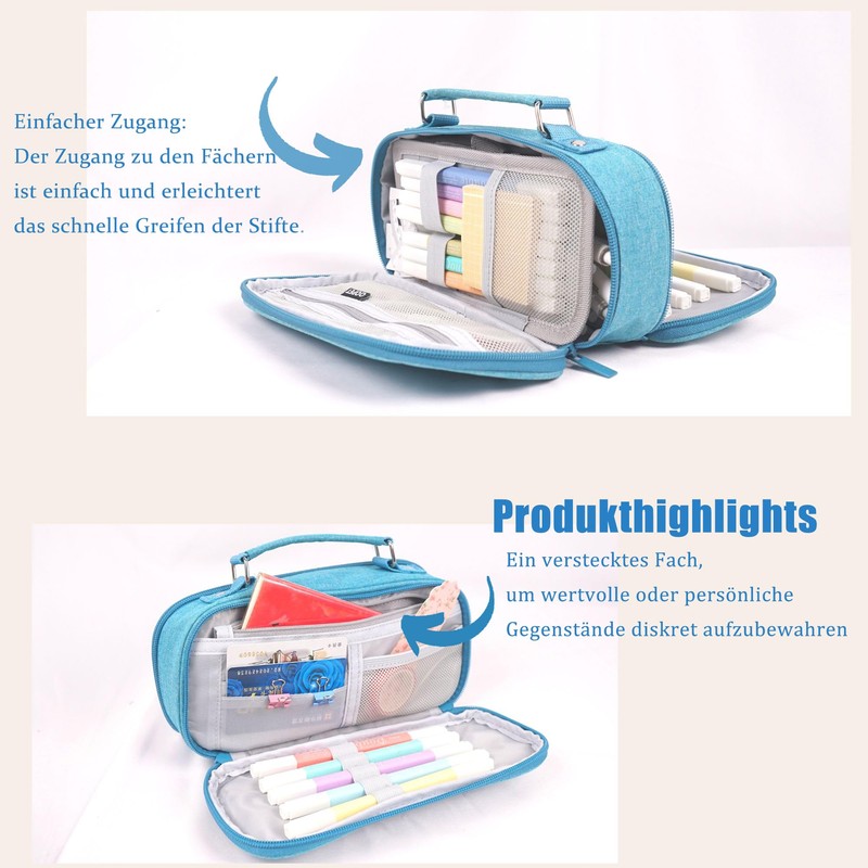 - Pencil case with practical additional compartments: In addition to the main compartments for pens, our pencil case has additional pockets and zip compartments in which you can store small notepads, erasers, rulers and other stationery. This means you have everything you need compact in one place.