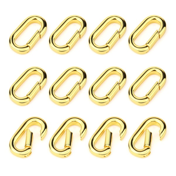 Qoroos 12 PCS 18K Gold Plated Carabiner Clasps and Closures for Clip for Jewelry Making Bracelet Necklace Oval Connector Jewelry Spring Clip Clasps for DIY Making Keychains