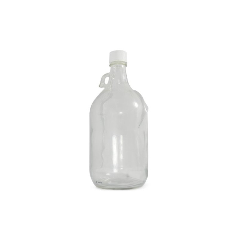 • Safety coated clear glass jug with white PP F422 HDPE foam lined cap