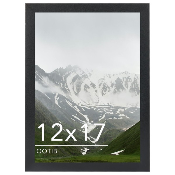 QOTIB 12x17 Picture Frame Black for Wall Mounting, Horizontal and Vertical Formats for Wall Hanging, Wood 12x17 Frame,Black, 1 Pack