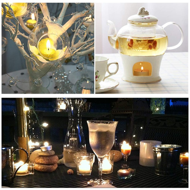 - Multi-purpose: These tea Lights are very suitable for all your special events and celebrations.Very suitable for wedding banquets, party gifts, table decorations,home decorations,swimming pools,Shabbats, weddings,emergencies,celebrations, party preferences,etc.