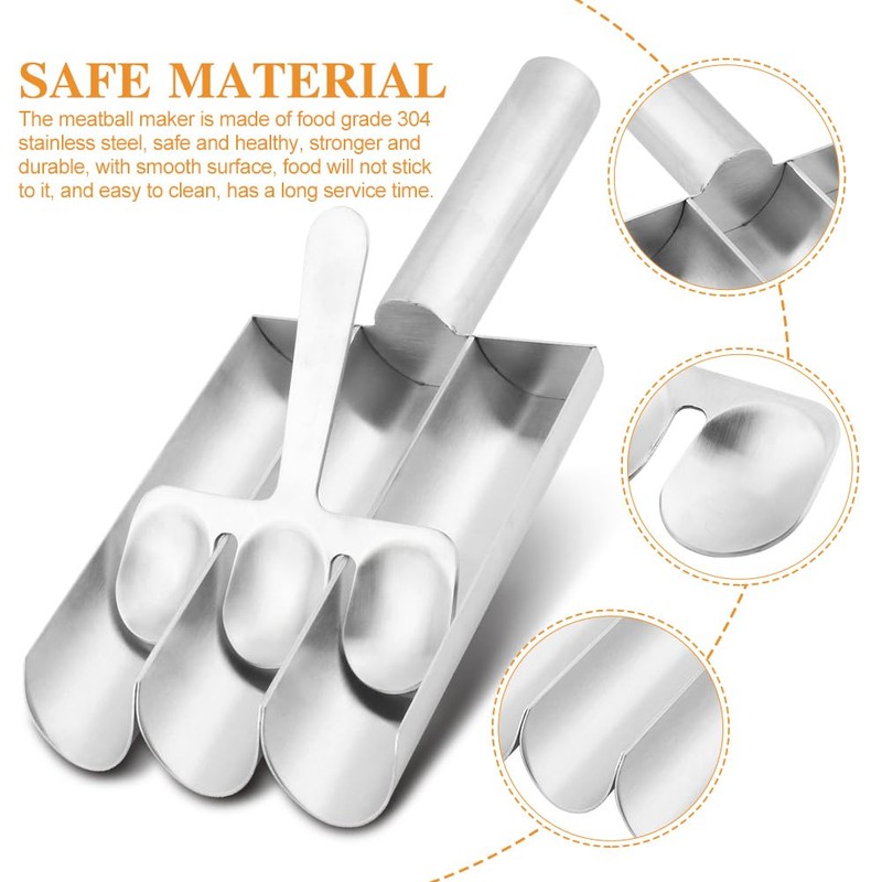 QOTSTEOS Stainless Steel Meatball Maker with Scoop - Creative Kitchen Triple Meatball Maker for Meatball Lovers Meatball Maker Cooking(Silver)