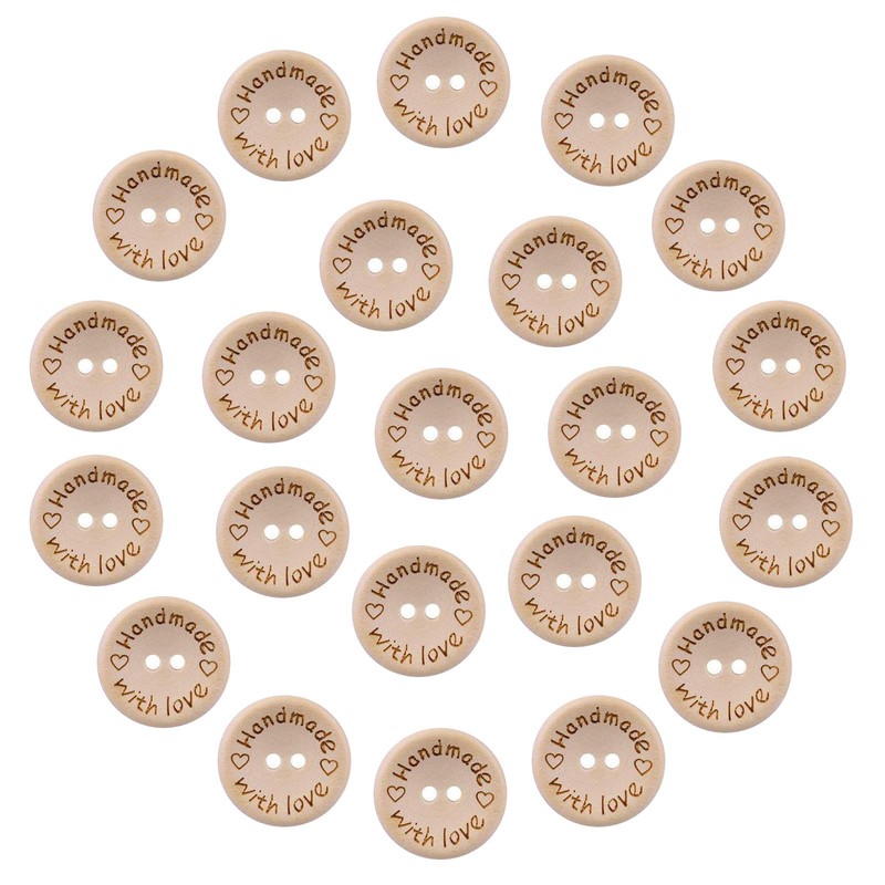 - Simple and Adorable Design:These wooden sewing buttons are curved with"handmade"letters and hearts around the round edge,cute and vivid,easy to be attached by threads,ribbons,ropes,glue and tape.