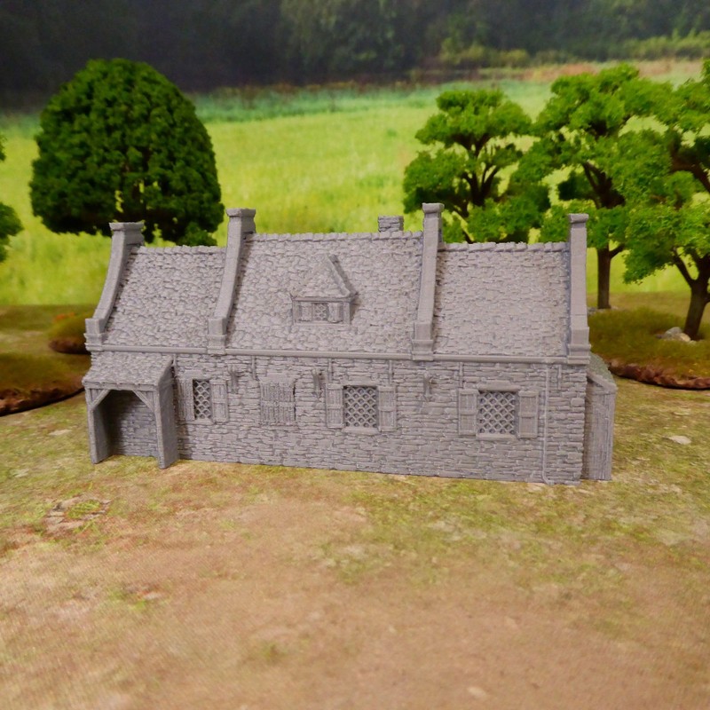 QP3D - Stone House Model Terrain, Wargaming Scenery for Tabletop 15mm Scale, 16-20 Century Medieval European Building for RPG 2WW and Railway Modelling, 3D Paintable (15mm)