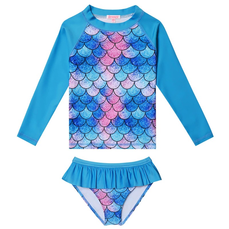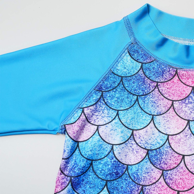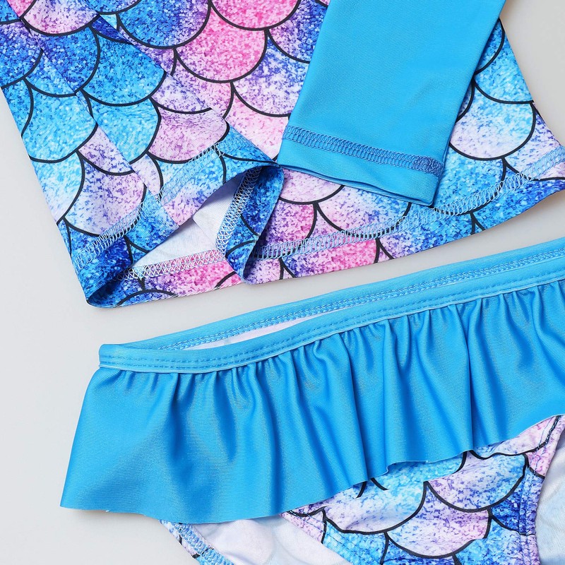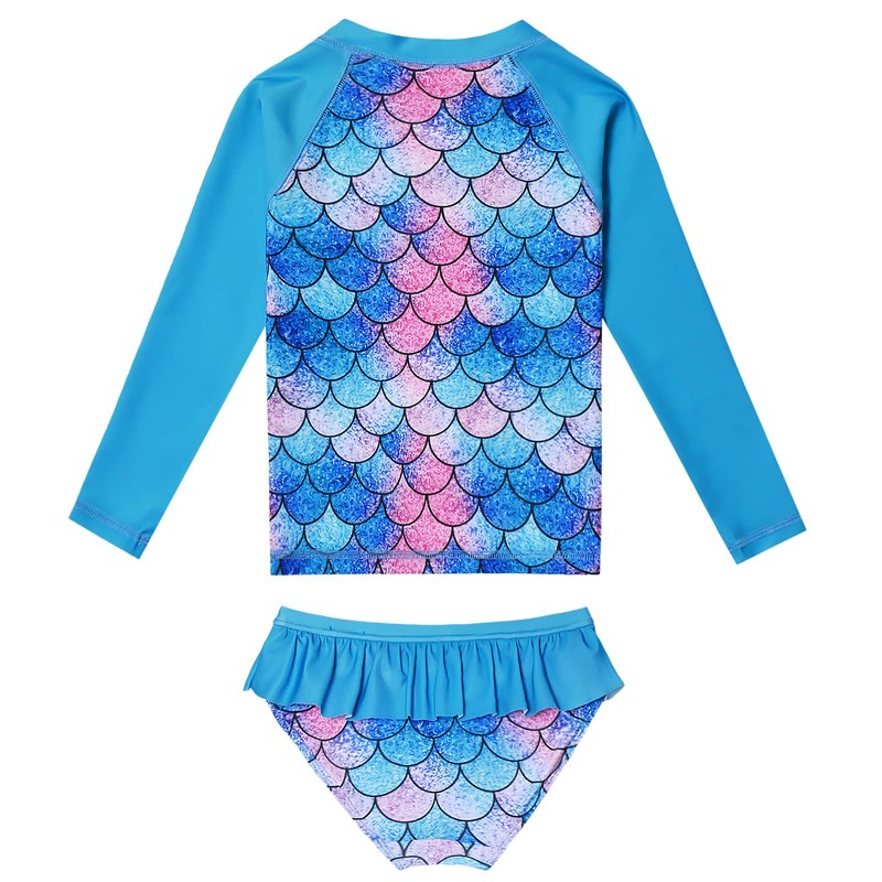 - Protector de erupción para niñas pequeñas 7 16, trajes de baño de sirena azul, trajes de baño de dos piezas, camisas de manga larga y parte inferior de volantes