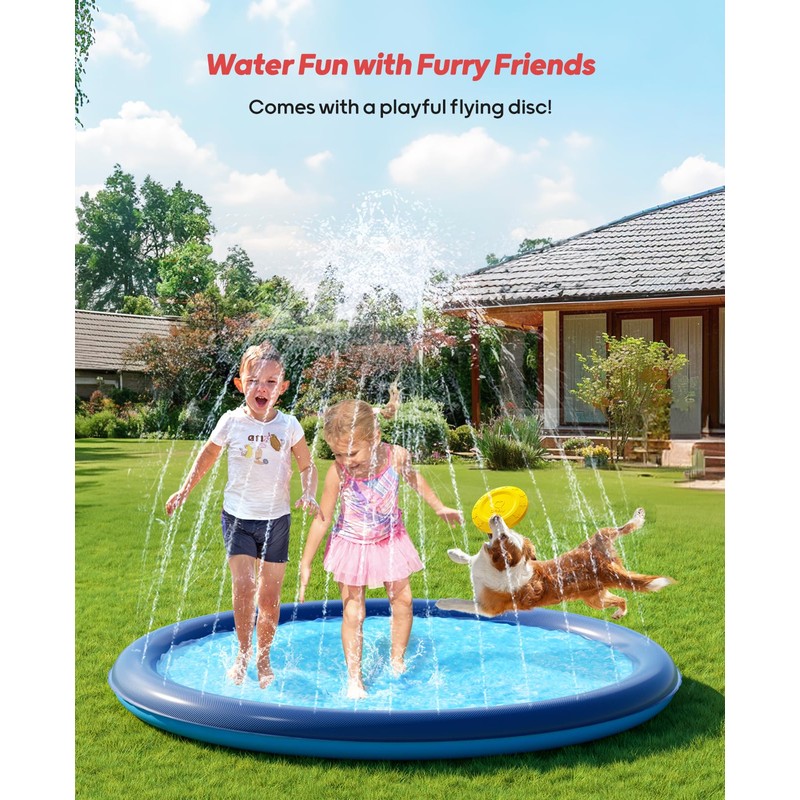 - ✔ Pet Frisbee for Extra Fun! – This 67-inch splash pad comes with a pet frisbee, making it the perfect dog pool, sprinkler for kids, and water play mat all in one. Let kids and pets cool off, chase, and splash together for an unforgettable summer experience.