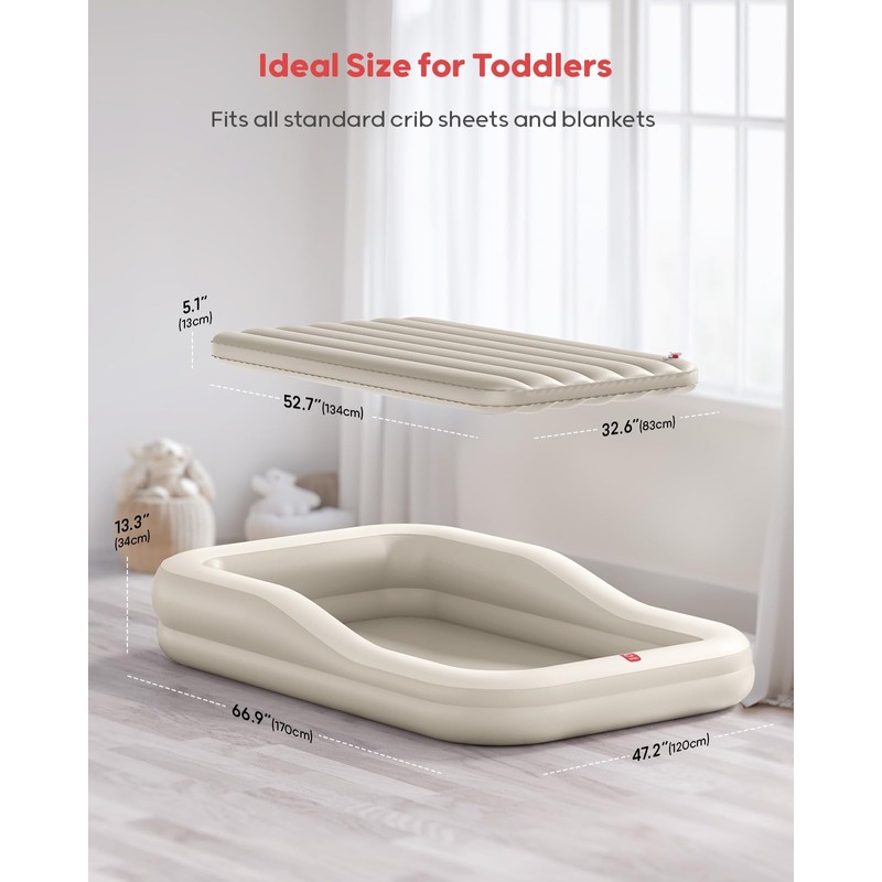 - Size Upgrade with Built-in Safety Bumper: This kids air mattress measures externally 66.9''*47.2''*13.3'' and internally 52.7''*32.6''*5.1''. It features a built-in safety bumper to accommodate various sleeping positions of children, ensuring they do not fall off the bed. It also serves as a small playground where children can play freely.