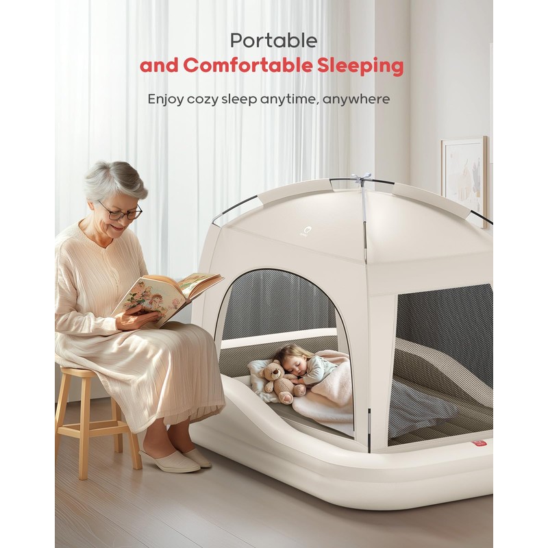 QPAU Inflatable Toddler Travel Bed with Tent, Baby Crib Tent, Portable Kids Air Mattress with Safety Bumpers, Ideal for Home, Grandma's, Camping, Traveling -Includes Fast Electric Pump