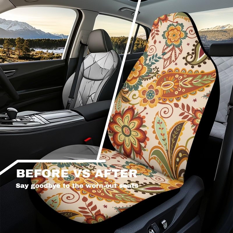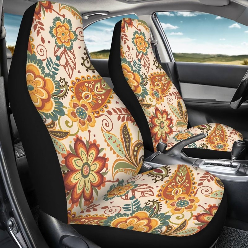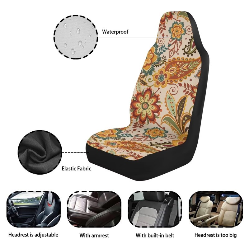 Qpednta Boho Floral Car Seat Covers 2 Pcs Stretch Polyester Fabric Cover Waterproof Car Seat Cover Easy Installation Universal Size Fit for Most Cars SUVs Trucks Vans