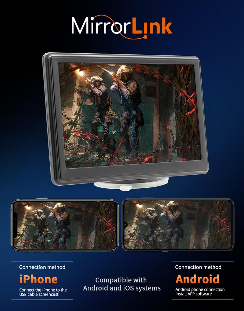 [QPJ] 2025 upgraded wireless Carplay audio with suction cup and rear camera, suitable for all models