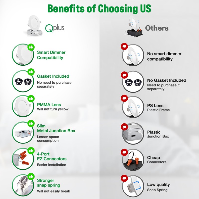 - Flexible Dimming Options - Achieve the ambiance you desire with a dimming range from 100-10%. These lights are compatible with most branded and Wi-Fi dimmers, offering you a wide range of customization options to set the mood effortlessly from anywhere in your home.